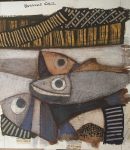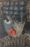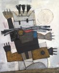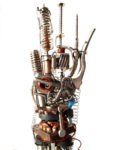 Photographie d’une sculpture intitulée « Up » réalisée en 2012 prenant la forme d’une main robotique et faite uniquement de pièces de récupération tels que des métaux, ressorts et aimants…